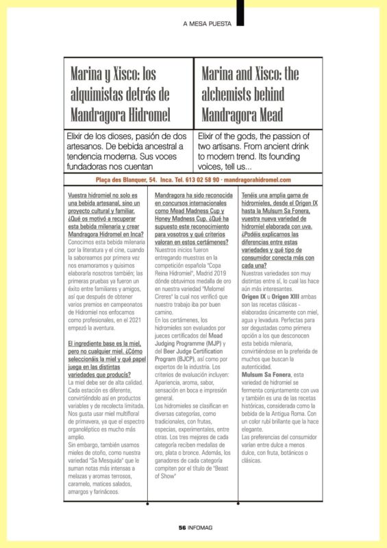 Mulsum “Sa Fonera” es un hidromiel “pyment” con uva merlot de la finca mallorquina @sonperejaia. Mulsum es la antigua bebida fermentada que data de la época romana donde el mosto de la uva y la miel fermentan conjuntamente creando una bebida delicada y tradicional. El sabor balanceado entre lo dulce y lo afrutado evoca tiempos ancestrales llevando el legado de la cultura romana a tu mesa como aperitivo o acompañamiento.