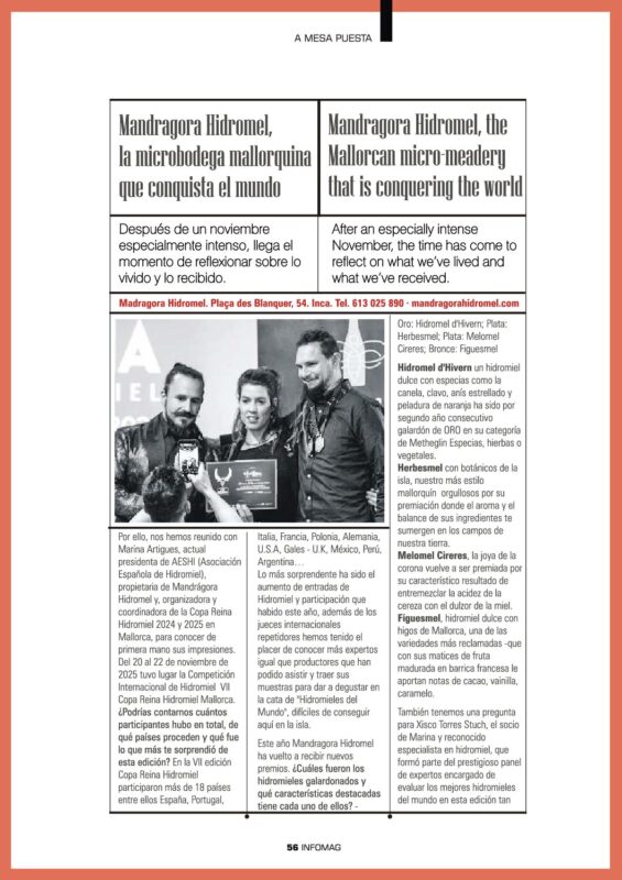 ENG: Mulsum “Sa Fonera” is a pyment-style mead made with Merlot grapes from the Mallorcan estate @sonperejaia. Mulsum is an ancient fermented drink dating back to Roman times, where grape must and honey ferment together to create a delicate and traditional beverage. Its balanced flavor, between sweetness and fruitiness, evokes ancestral times, bringing the legacy of Roman culture to your table as an aperitif or accompaniment.